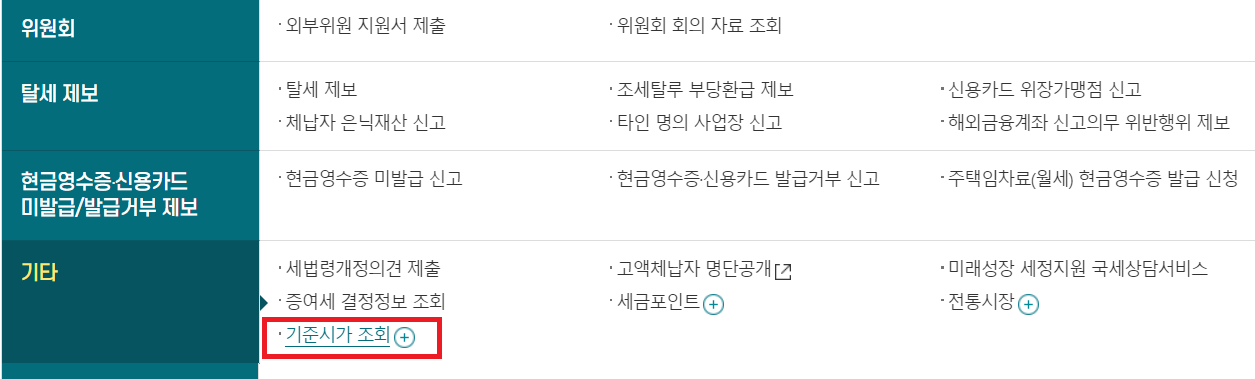 2) 하단의 기타 탭 / 기준시가 조회 클릭