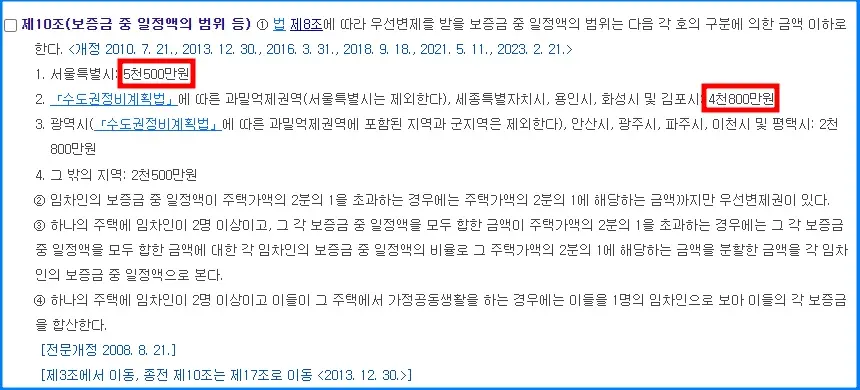 과거의 기준은 주택임대차 보호법 시행령에서 확인할 수 있습니다.